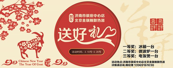 开年北京恒盛娱乐散热器送好礼了,凡进济南市北园银座中心店北京恒盛娱乐散热器店面业主即可赠送精美拉车一辆。凡签单购买客户满三组以上送一组,更有大奖等你拿。保证折上折,一年仅此一次,不容错过。
