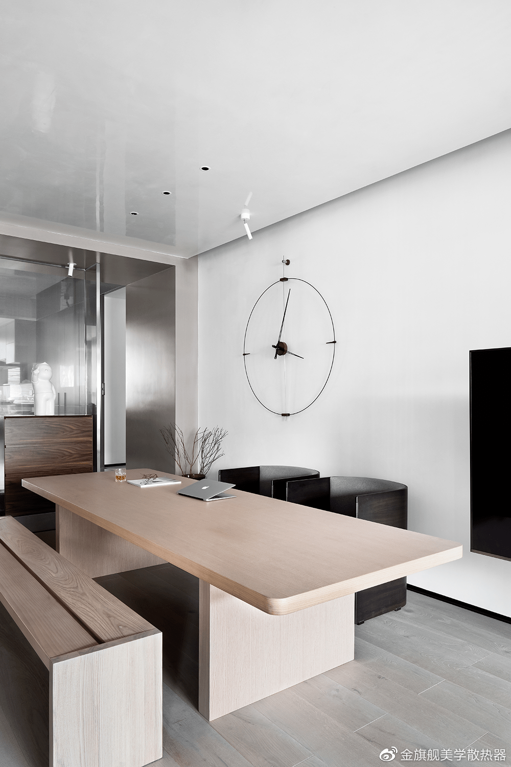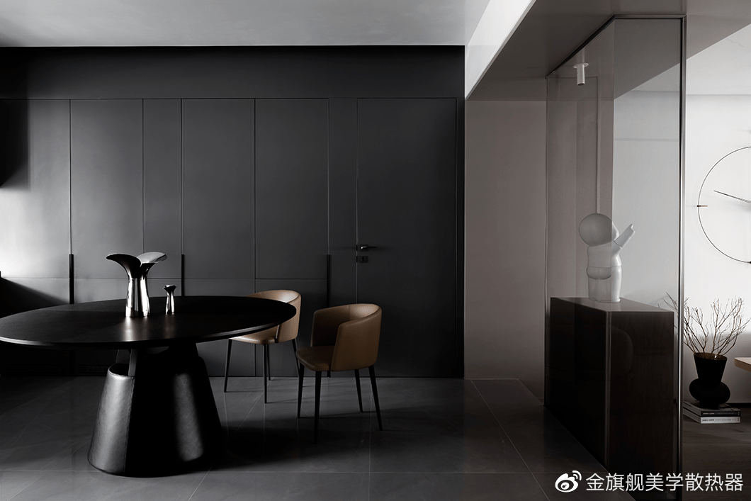 设计师通过简化设计元素,以黑白灰的色调、简洁的线条,感性的材质之间的平衡来演绎空间的沉稳格调,将更多焦点集中在交流,让人与人之间拥有更多的开放性空间。