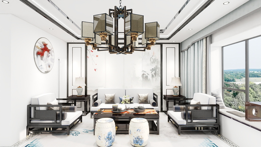 新中式风格融合了传统中式元素和现代设计手法,强调空间的层次感与对称美。其主要特点包括: